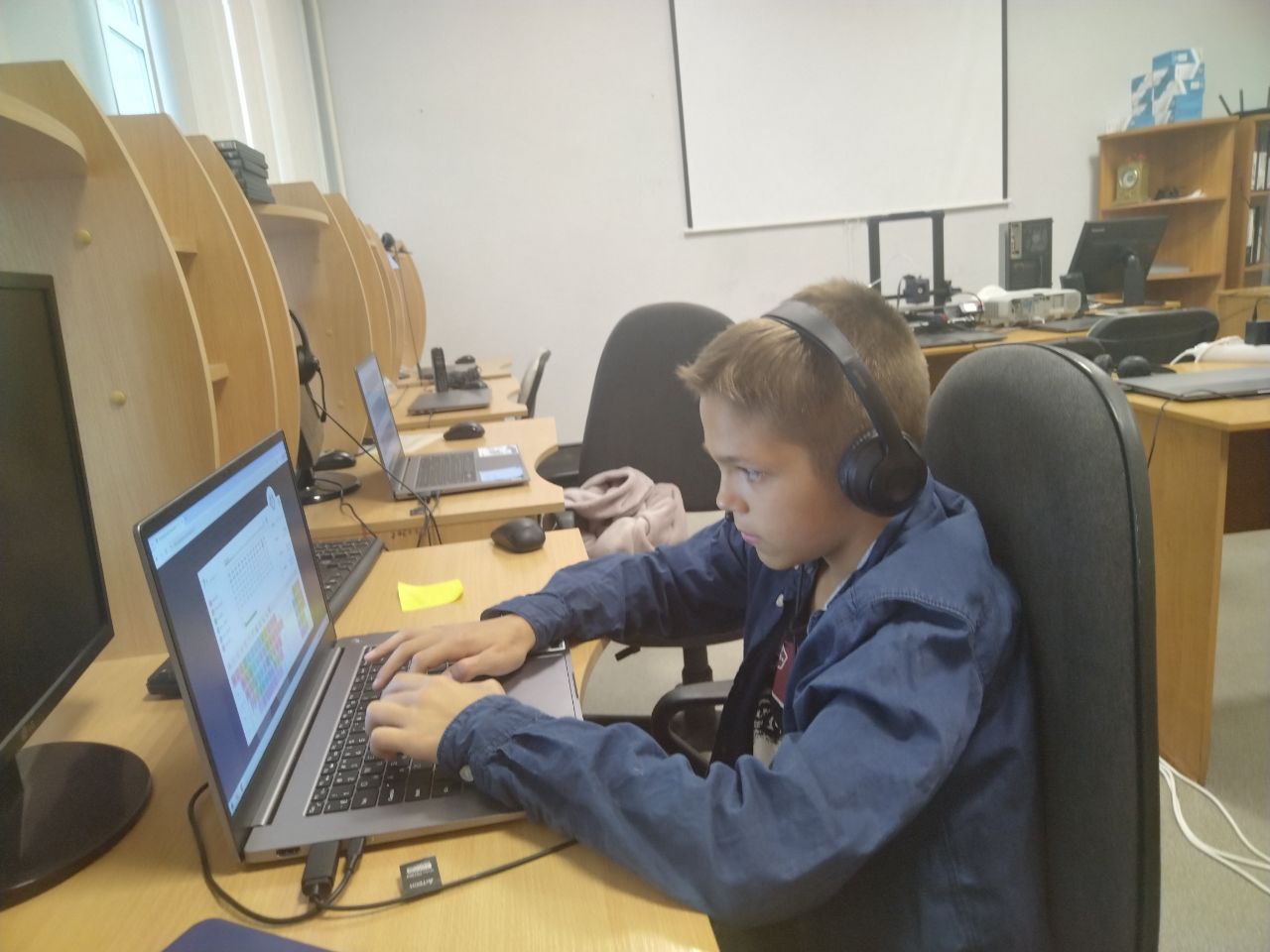 Помимо очных и онлайн занятий с нашими специалистами по разным темам (строение компьютера, основы работы с компьютером, азы программирования в 1С, 3D-моделирование, быстрая печать на клавиатуре...), было организовано прохождение ряда онлайн-курсов 1С, участие в проекте «Пазлик» от фонда «Будущие лидеры», а также заключен трехсторонний договор с ЯГТУ (Ярославский государственный технический университет), на базе которого были пройдены доп.образовательные программы «Системное администрирование» и «3D-моделирование».