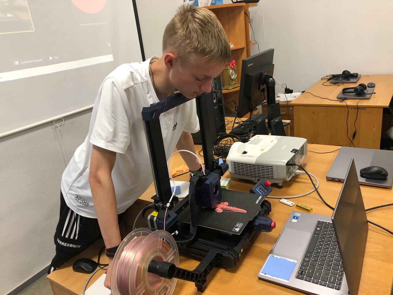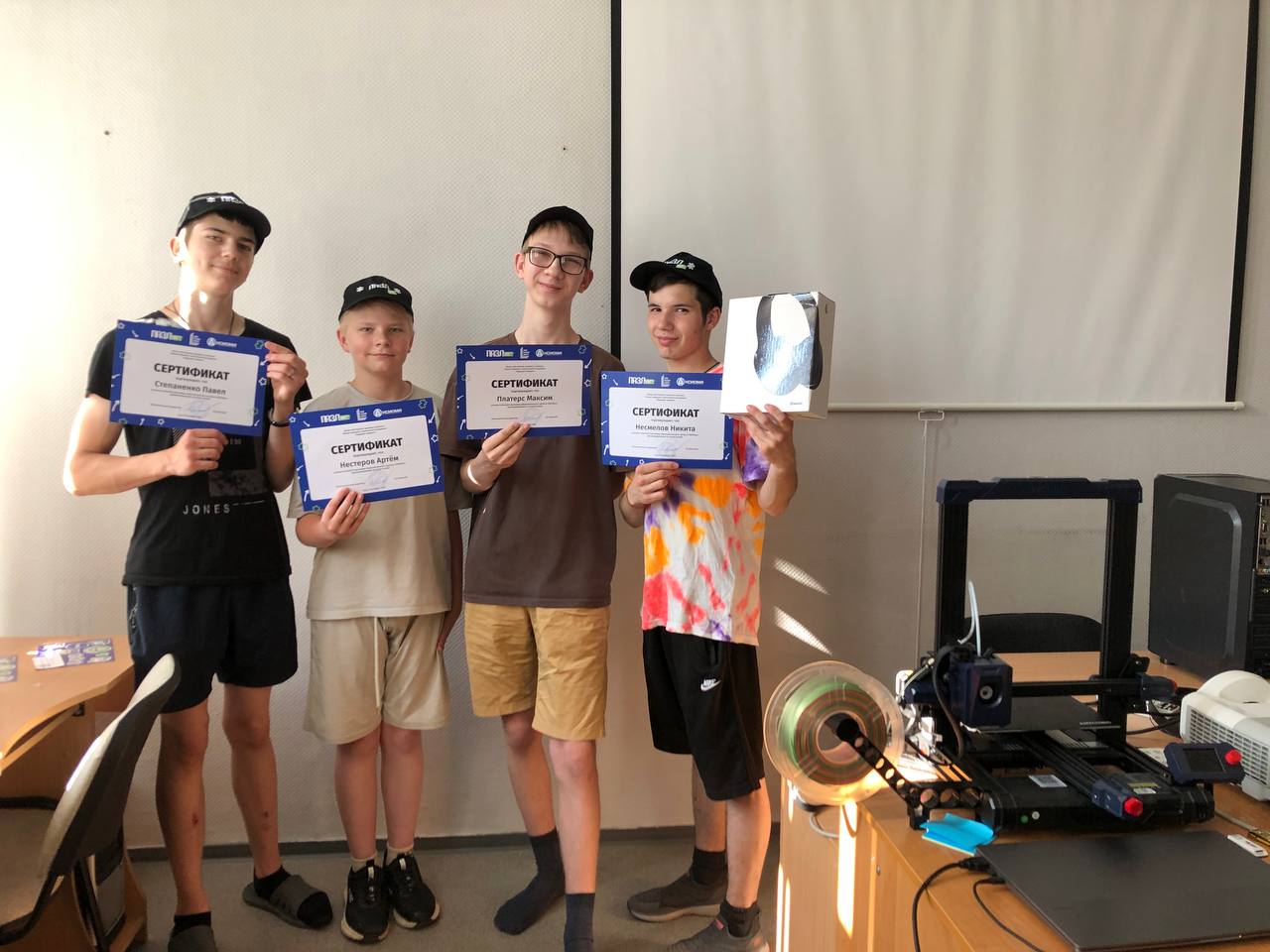 После успешного прохождения курса 3D-моделирование» мы подарили ребятам настоящий 3D-принтер, провели дополнительный мастер-класс по работе с ним, и все дети пробовали печатать свои модели.